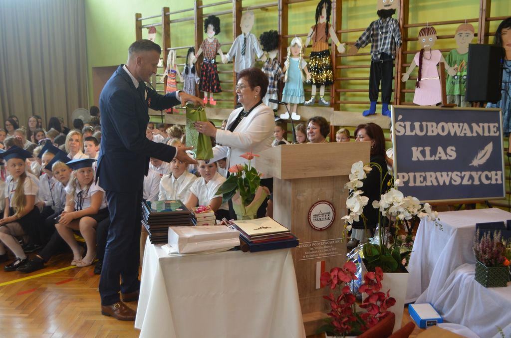 Szczególnym momentem apelu było ślubowanie uczniów klas pierwszych. Najmłodsi adepci edukacji obiecali pilnie się uczyć, dbać o dobre imię szkoły i szanować jej tradycje. Od tej chwili stali się pełnoprawnymi członkami społeczności szkolnej, co zostało nagrodzone gromkimi brawami.