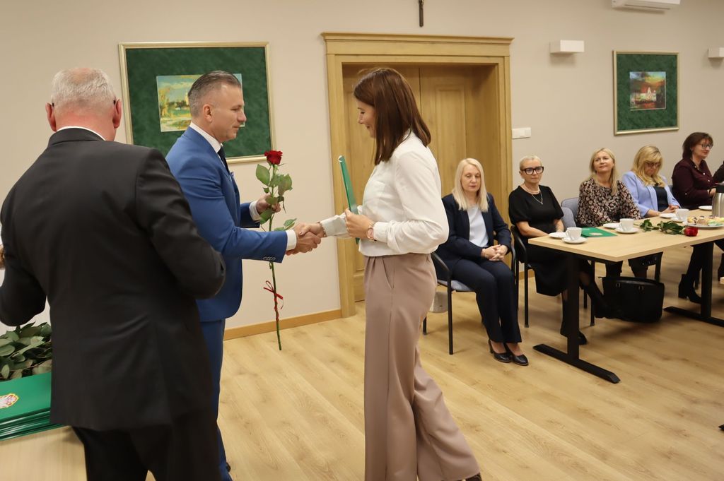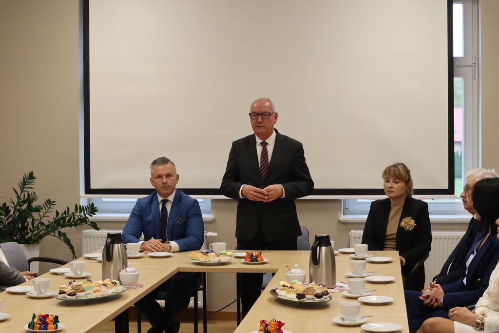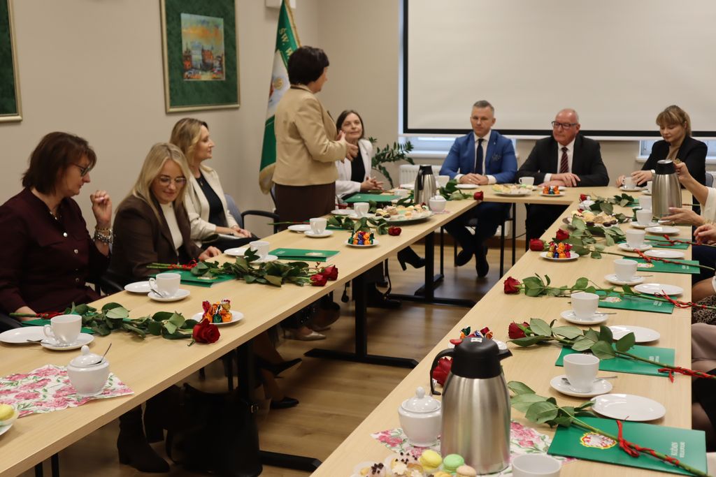 W spotkaniu wzięły również udział Sekretarz Gminy Agnieszka Rogowska oraz kierownik Referatu Oświaty Irena Serek. Po części oficjalnej odbyło się spotkanie przy kawie, podczas którego nauczyciele i dyrektorzy mieli okazję porozmawiać z przedstawicielami samorządu o aktualnej sytuacji w szkołach, potrzebach kadry pedagogicznej oraz wyzwaniach stojących przed oświatą.