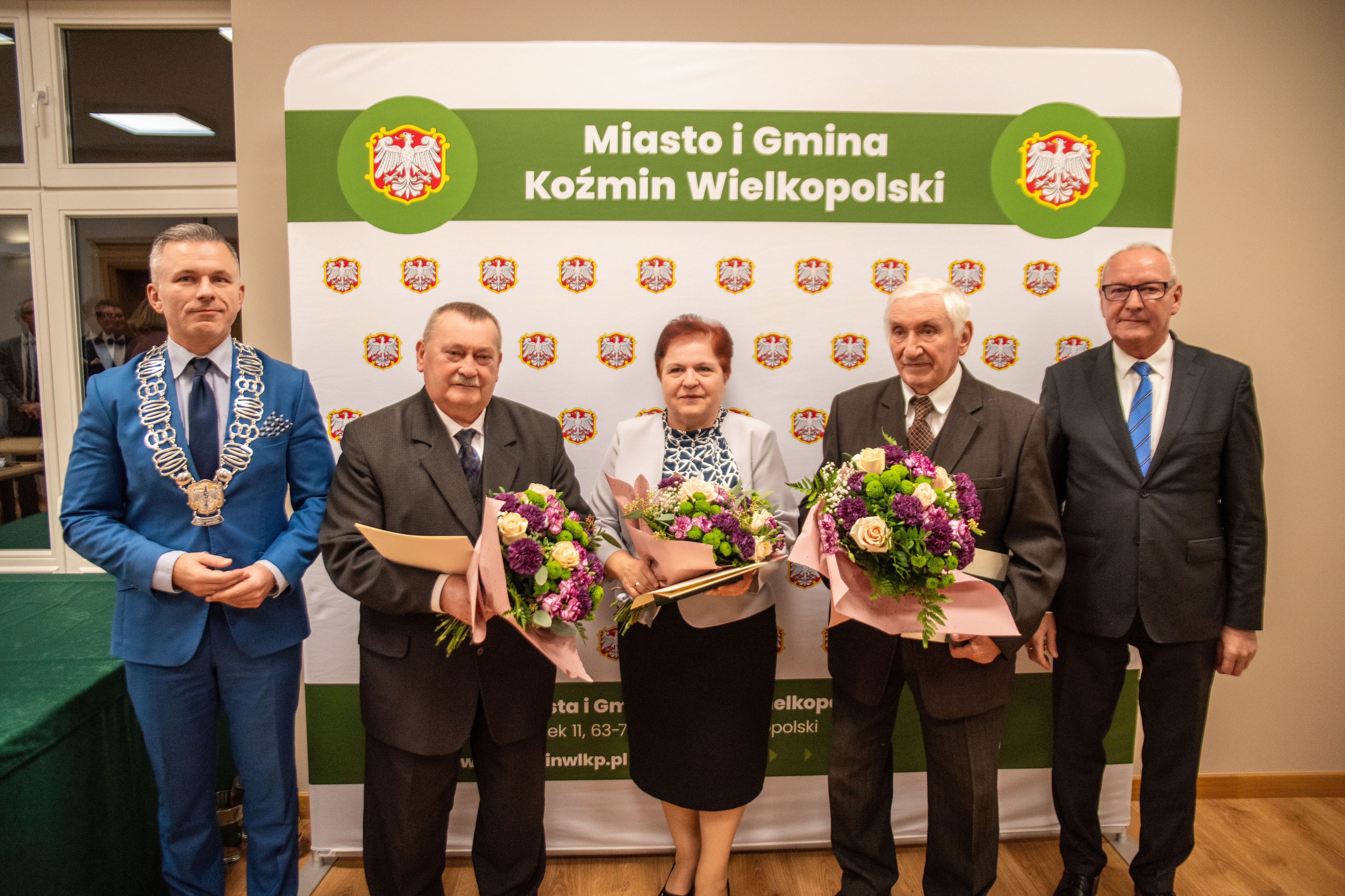 Podczas sesji Rada Miejska uhonorowała wymienione osoby tytułem „Zasłużony dla Ziemi Koźmińskiej”, wręczając im akty nadania oraz medale okolicznościowe.
