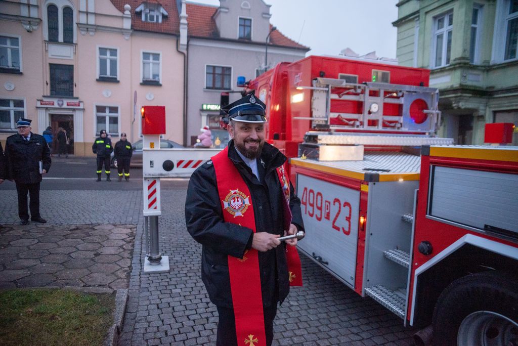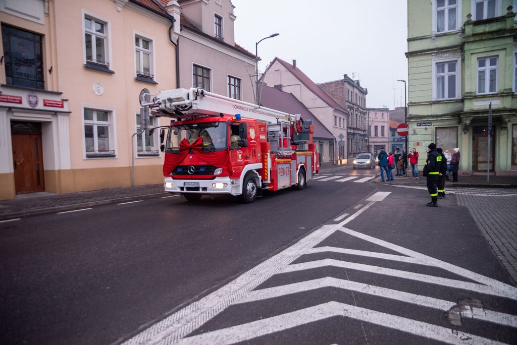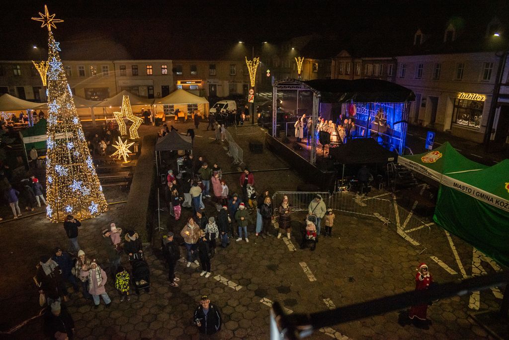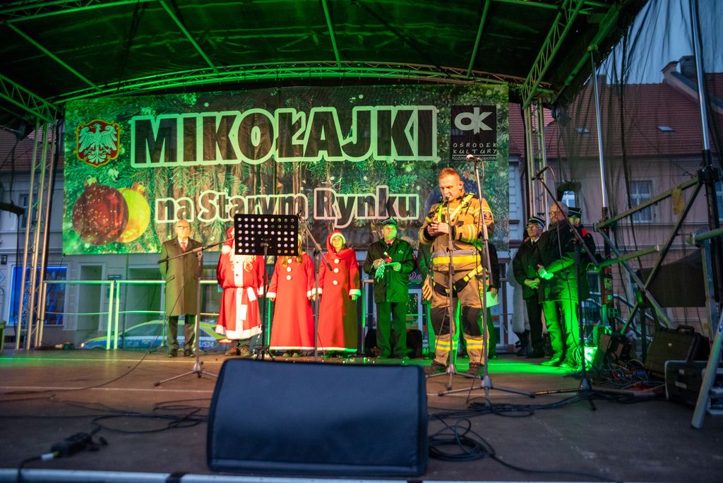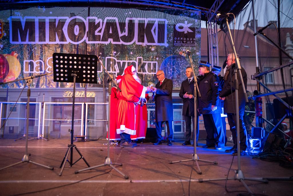 Zanim rozbłysła miejska choinka, strażacy z Ochotniczej Straży Pożarnej w Koźminie Wielkopolskim przeprowadzili widowiskową akcję ewakuacji Mikołaja z dachu. Operacja przebiegła sprawnie dzięki nowemu samochodowi z potężnym podnośnikiem, który niedawno zasilił wyposażenie jednostki. Niesforny święty szczęśliwie dotarł na ziemię, witany brawami i uśmiechami koźminian i koźminianek.