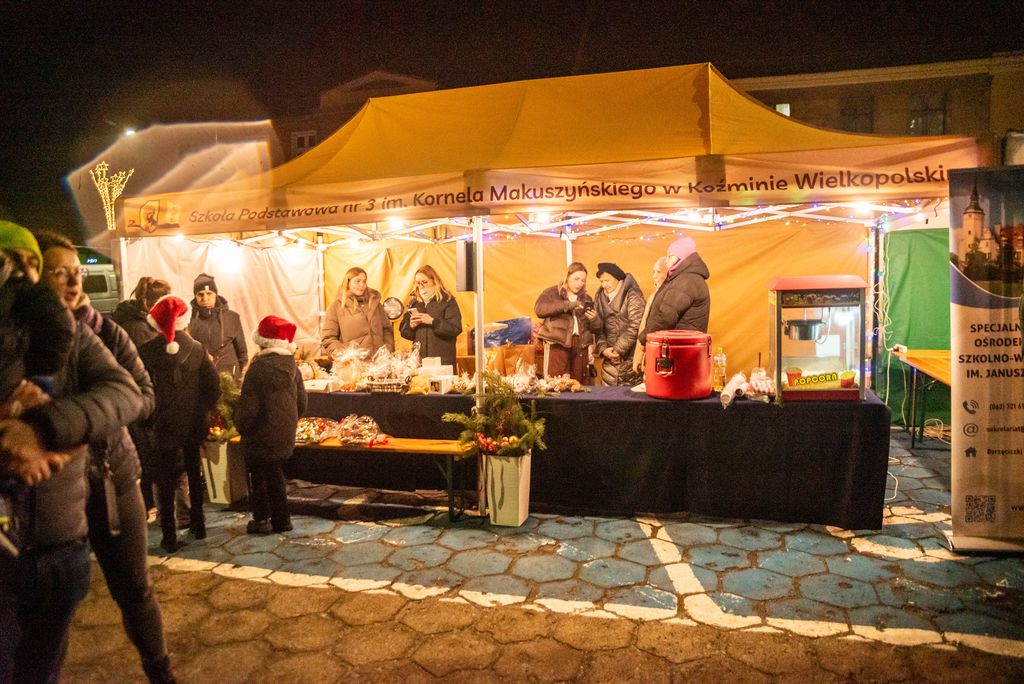 Najmłodsi uczestnicy mogli własnoręcznie udekorować pierniczki podczas warsztatów „Piernikowe figle”, prowadzonych przez bibliotekarki z Biblioteki Publicznej oraz pracownice Żłobka Publicznego. Tradycyjnie urzędniczki Urzędu Miasta i Gminy częstowały gości gorącym kakao i herbatą, a na specjalnej ściance z napisem „Zimowe pozdrowienia z Koźmina Wielkopolskiego” każdy mógł wykonać pamiątkowe zdjęcie.