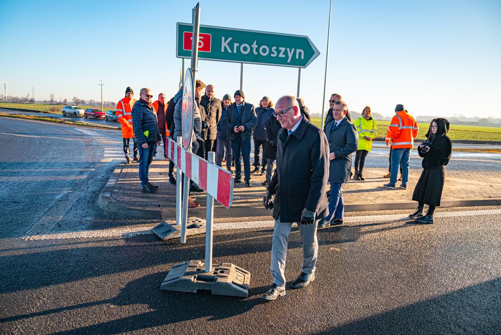 Symbolicznego usunięcia barier drogowych na nowej trasie dokonali Maciej Bratborski, Burmistrz Miasta i Gminy Koźmin Wielkopolski, oraz Patryk Kosicki, dyrektor poznańskiego oddziału Generalnej Dyrekcji Dróg Krajowych i Autostrad. Tym samym obwodnica została oficjalnie udostępniona do użytku.