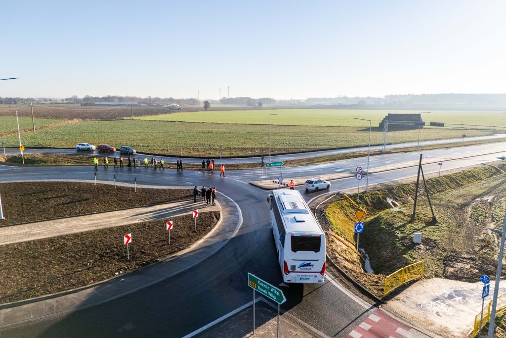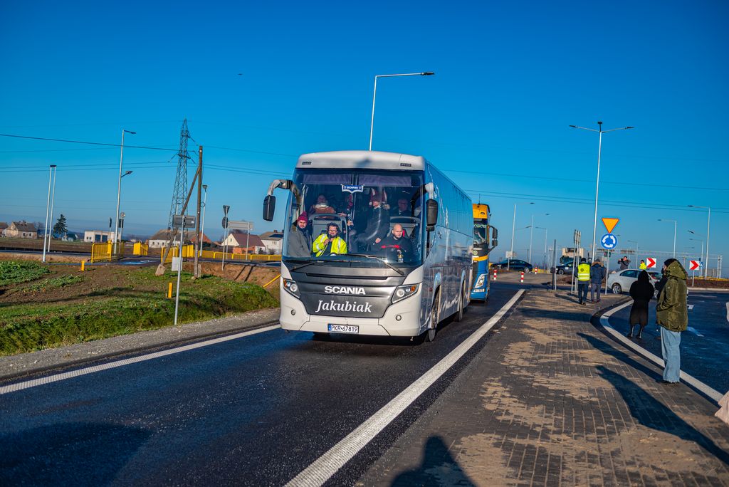 Jako pierwszy po nowej drodze przejechał autobus, którym podróżowali posłowie, radni, koźmińscy seniorzy oraz inni uczestnicy uroczystości. Podczas przejazdu 6-kilometrową trasą przedstawiciel wykonawcy zaprezentował przebieg inwestycji oraz omówił najważniejsze etapy jej realizacji.