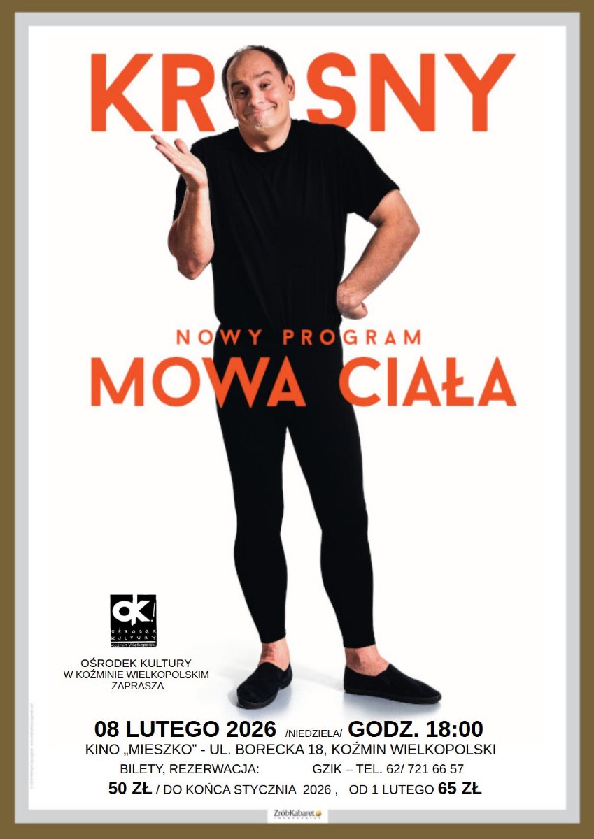 Ośrodek Kultury w Koźminie Wielkopolskim zaprasza na wydarzenie pt. Krosny- „Mowa ciała”, które odbędzie się 8 lutego 2026 roku (niedziela) o godz. 18:00 w Kinie „Mieszko” przy ul. Boreckiej 18 w Koźminie Wielkopolskim.