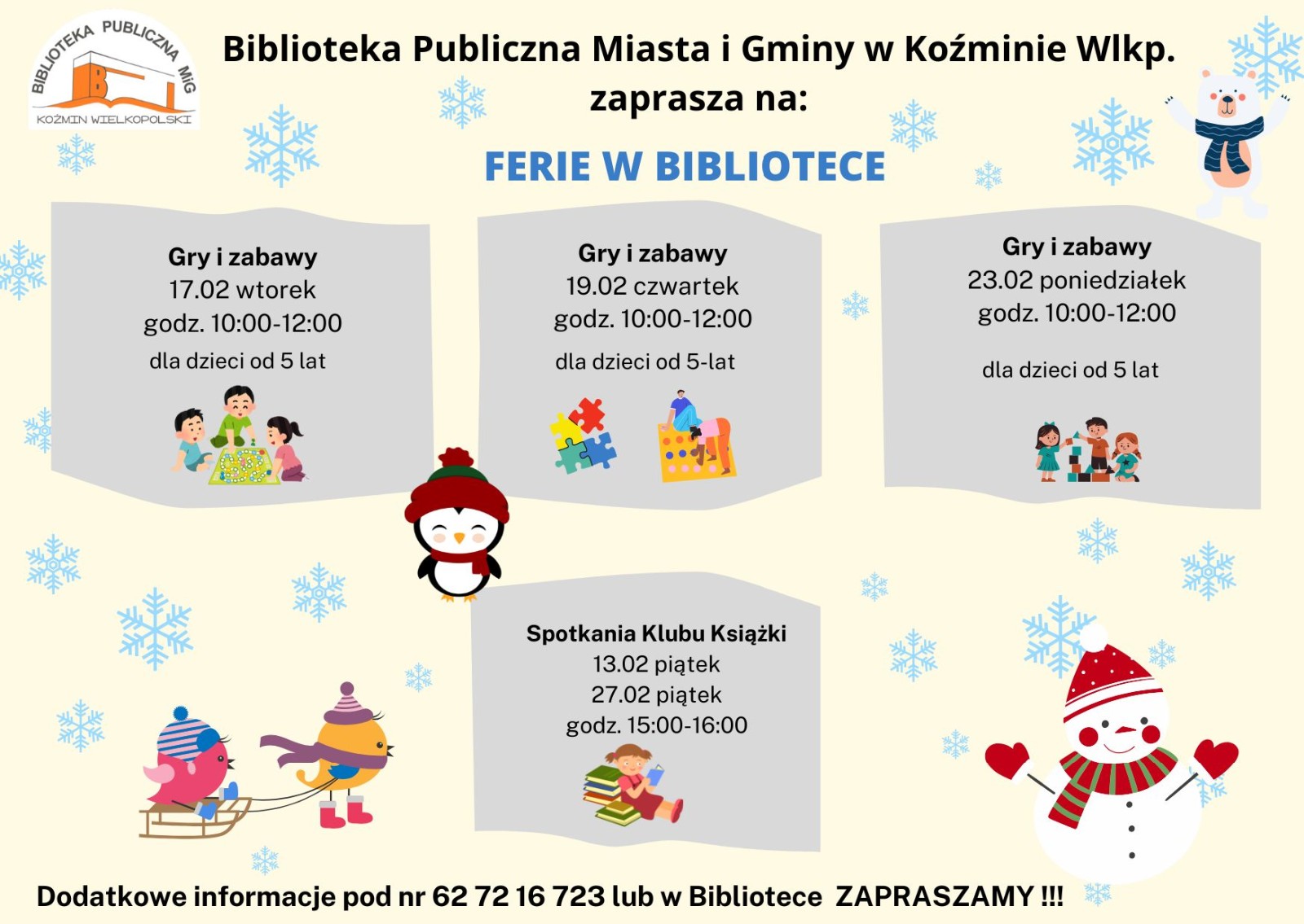 Dodatkowe informacje pod nr 62 72 16 723 lub w Bibliotece