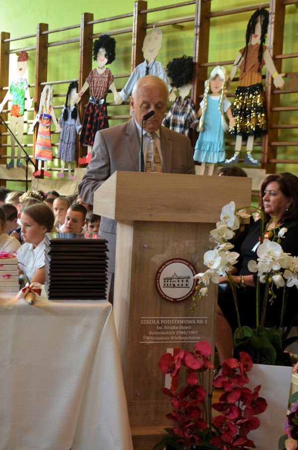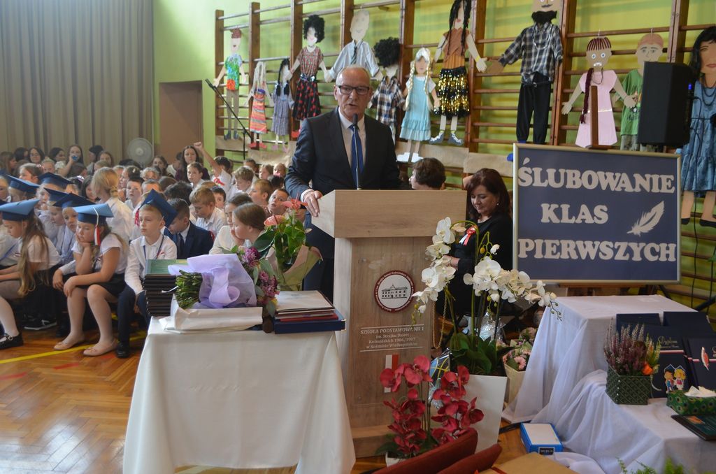 Uroczystość otworzył dyrektor Jacek Zawodny witając wszystkich przybyłych gości, rodziców, nauczycieli i uczniów. W swoim przemówieniu zwróciła uwagę na bogatą tradycję naszej szkoły oraz na znaczenie wspólnoty, która od 155 lat tworzy jej historię.