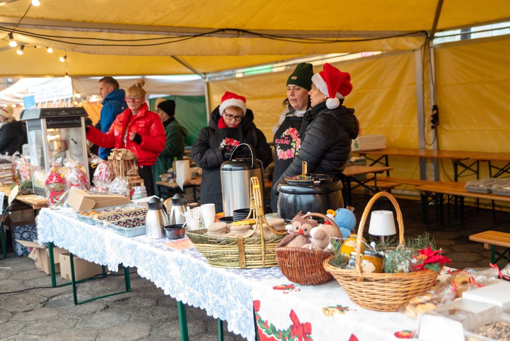 Na świątecznym jarmarku czekało mnóstwo pyszności oraz pięknych, ręcznie wykonanych ozdób. W tym roku swoje stoiska przygotowali: