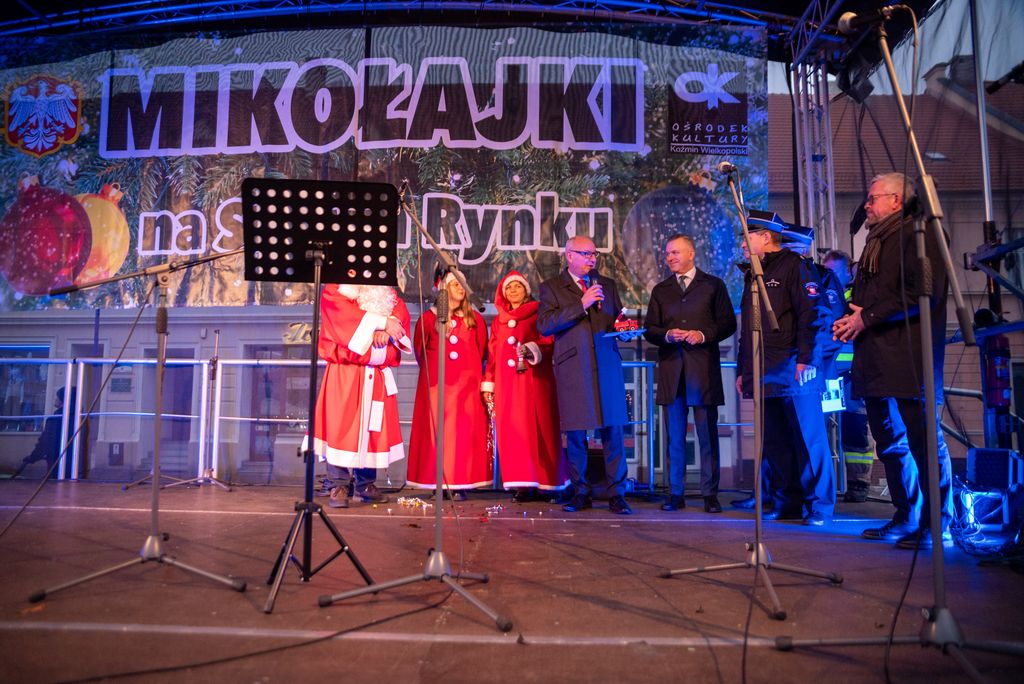 Zanim rozbłysła miejska choinka, strażacy z Ochotniczej Straży Pożarnej w Koźminie Wielkopolskim przeprowadzili widowiskową akcję ewakuacji Mikołaja z dachu. Operacja przebiegła sprawnie dzięki nowemu samochodowi z potężnym podnośnikiem, który niedawno zasilił wyposażenie jednostki. Niesforny święty szczęśliwie dotarł na ziemię, witany brawami i uśmiechami koźminian i koźminianek.