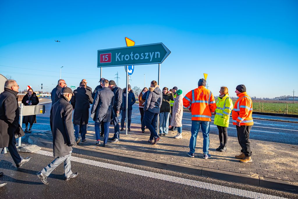 Symbolicznego usunięcia barier drogowych na nowej trasie dokonali Maciej Bratborski, Burmistrz Miasta i Gminy Koźmin Wielkopolski, oraz Patryk Kosicki, dyrektor poznańskiego oddziału Generalnej Dyrekcji Dróg Krajowych i Autostrad. Tym samym obwodnica została oficjalnie udostępniona do użytku.