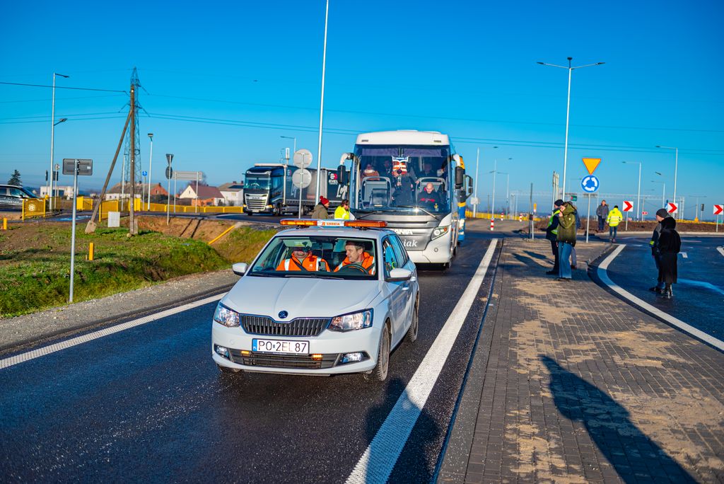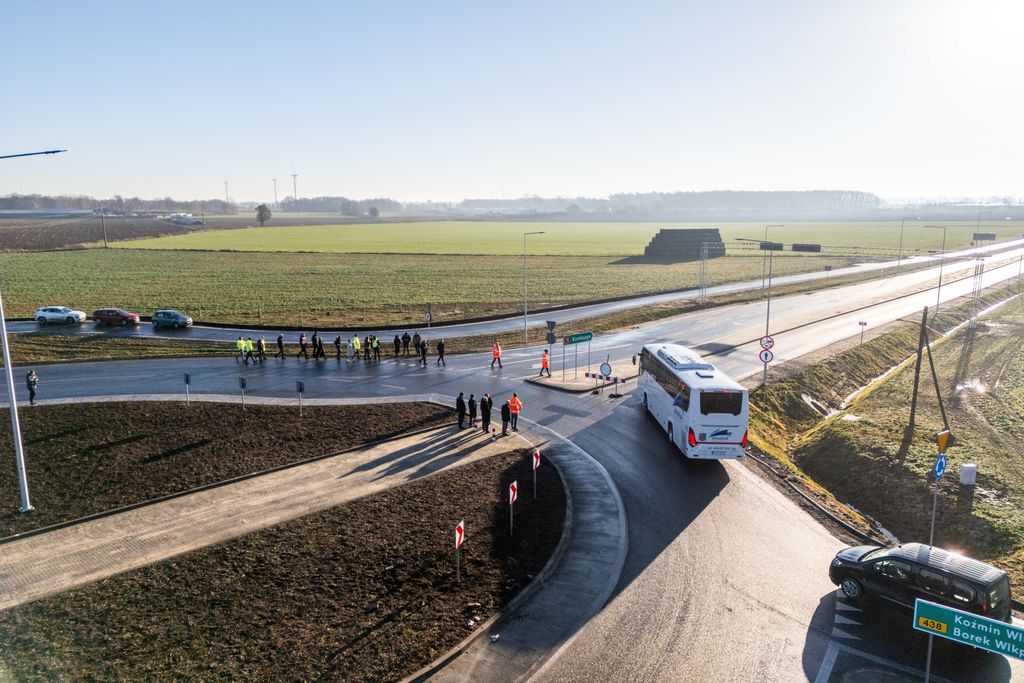 Jako pierwszy po nowej drodze przejechał autobus, którym podróżowali posłowie, radni, koźmińscy seniorzy oraz inni uczestnicy uroczystości. Podczas przejazdu 6-kilometrową trasą przedstawiciel wykonawcy zaprezentował przebieg inwestycji oraz omówił najważniejsze etapy jej realizacji.