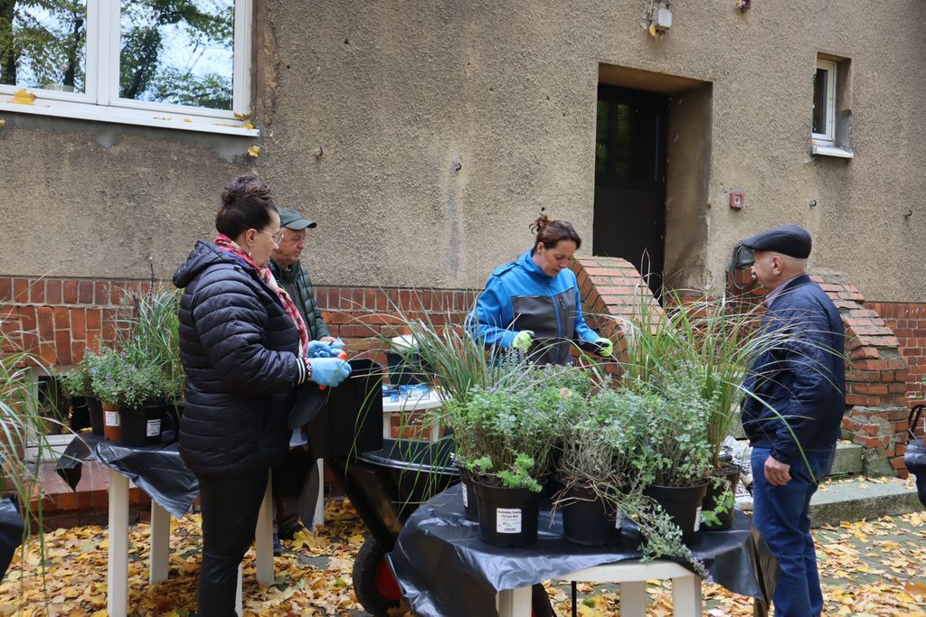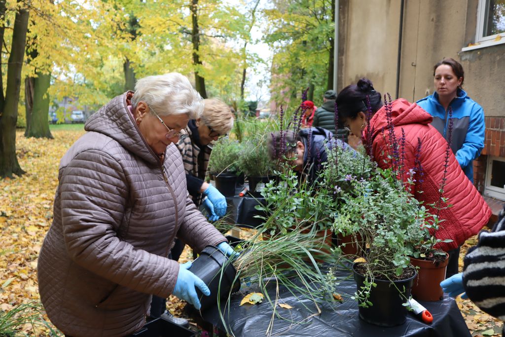Kolejnym ważnym elementem realizacji projektu były spotkania z seniorami w ramach zielonego wolontariatu oraz wykładu. Seniorzy dowiedzieli się jak pielęgnować rośliny oraz, że prace ogrodowe wpływają na poprawę zdrowia fizycznego, psychicznego i emocjonalnego człowieka. Nauczyli się tworzyć kompozycje roślinne oraz dowiedzieli się, że można spędzać czas na świeżym powietrzu i nawiązać kontakt z naturą.