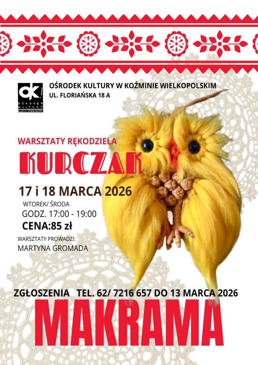 Ośrodek Kultury w Koźminie Wielkopolskim zaprasza na warsztaty rękodzieła- kurczak